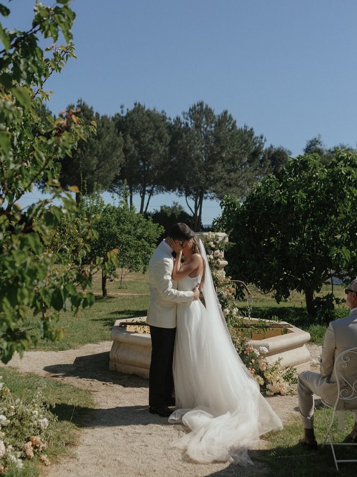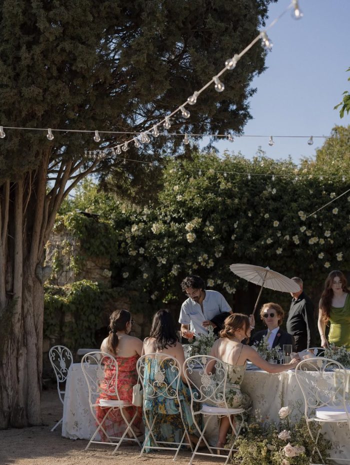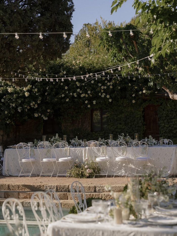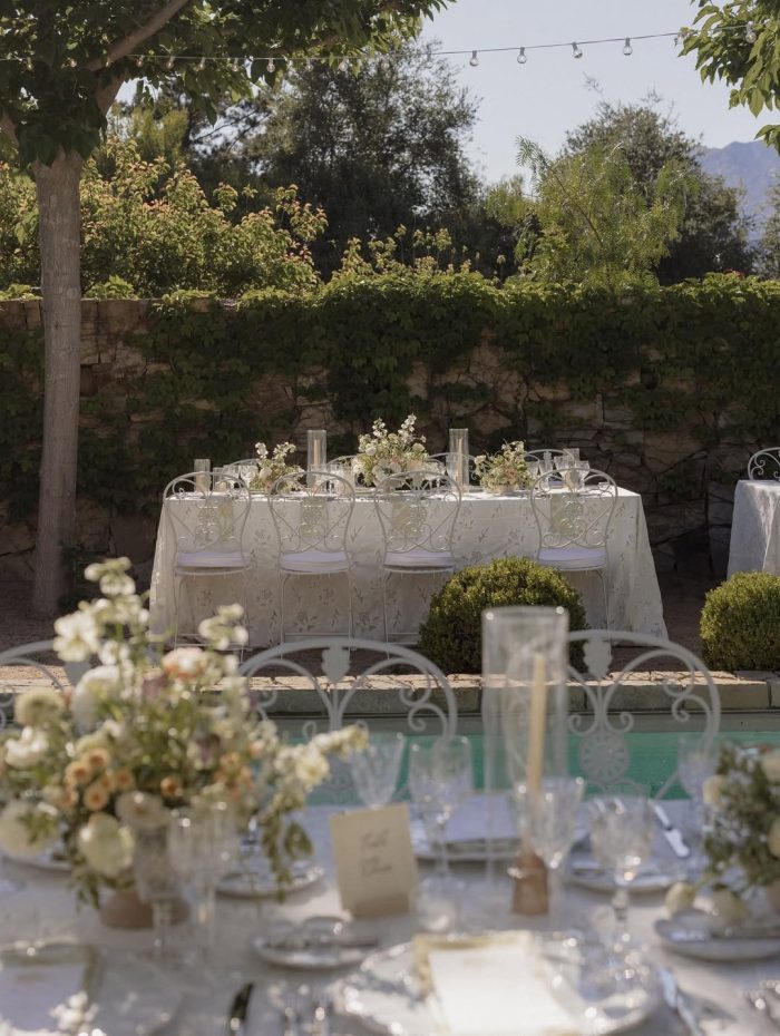 Following the ceremony, guests were welcomed into a relaxed yet refined cocktail hour surrounded by Ojai’s rolling hills and warm California light. This was a perfect example of how thoughtful event rentals can transform an outdoor space. Featuring our Foldable Garden Chairs and Giardino Delle Rose Chairs, the setup embraced both style and functionality for a seamless guest experience. Paired with Garden Bistro Tables, the look was not only cohesive but fully customizable, with color options available to match any wedding palette or event design.